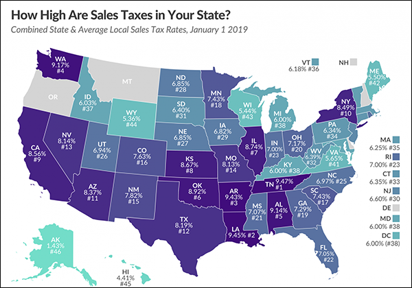 首先我們來(lái)了解一下美國(guó)的消費(fèi)稅是如何計(jì)算的,雖然在美國(guó)各地的消費(fèi)稅都不同,到那時(shí)基本上都是由兩個(gè)部分組成即綜合消費(fèi)稅=地方消費(fèi)稅(Local Sales Tax)+州消費(fèi)稅 (State Sales Tax);所以如果你選擇的是免稅倉(cāng)庫(kù),相當(dāng)于州消費(fèi)稅為零,換言之你可以省掉這一筆錢(qián),比起非免稅倉(cāng)庫(kù)要更加劃算一些。美國(guó)一共有45個(gè)州征收消費(fèi)稅,但是只有5個(gè)州免州消費(fèi)稅,它們分別是:特拉華州 Delaware、蒙大拿州 Montana、新罕布夏州 New Hampshire、俄勒岡州 Oregon、阿拉斯加州 Alaska。